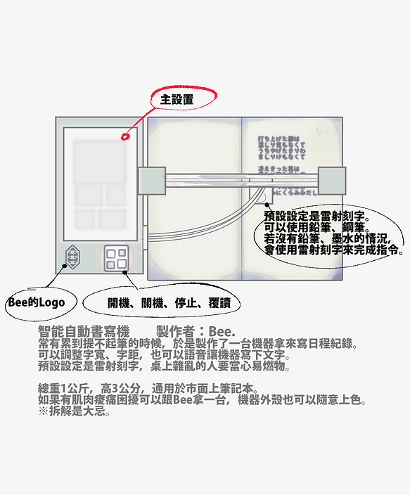 有寫日記的習慣,但是不親筆寫,使用自己製作的機器寫日記。